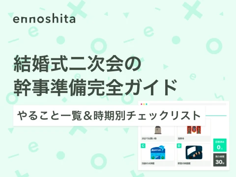 二次会の幹事を頼まれたら最初に読む記事。4ヶ月前から当日までのやること一覧を時期別チェックリストで完全網羅。新郎新婦との分担表、会費相場データ、よくある失敗と対策まで解説します。